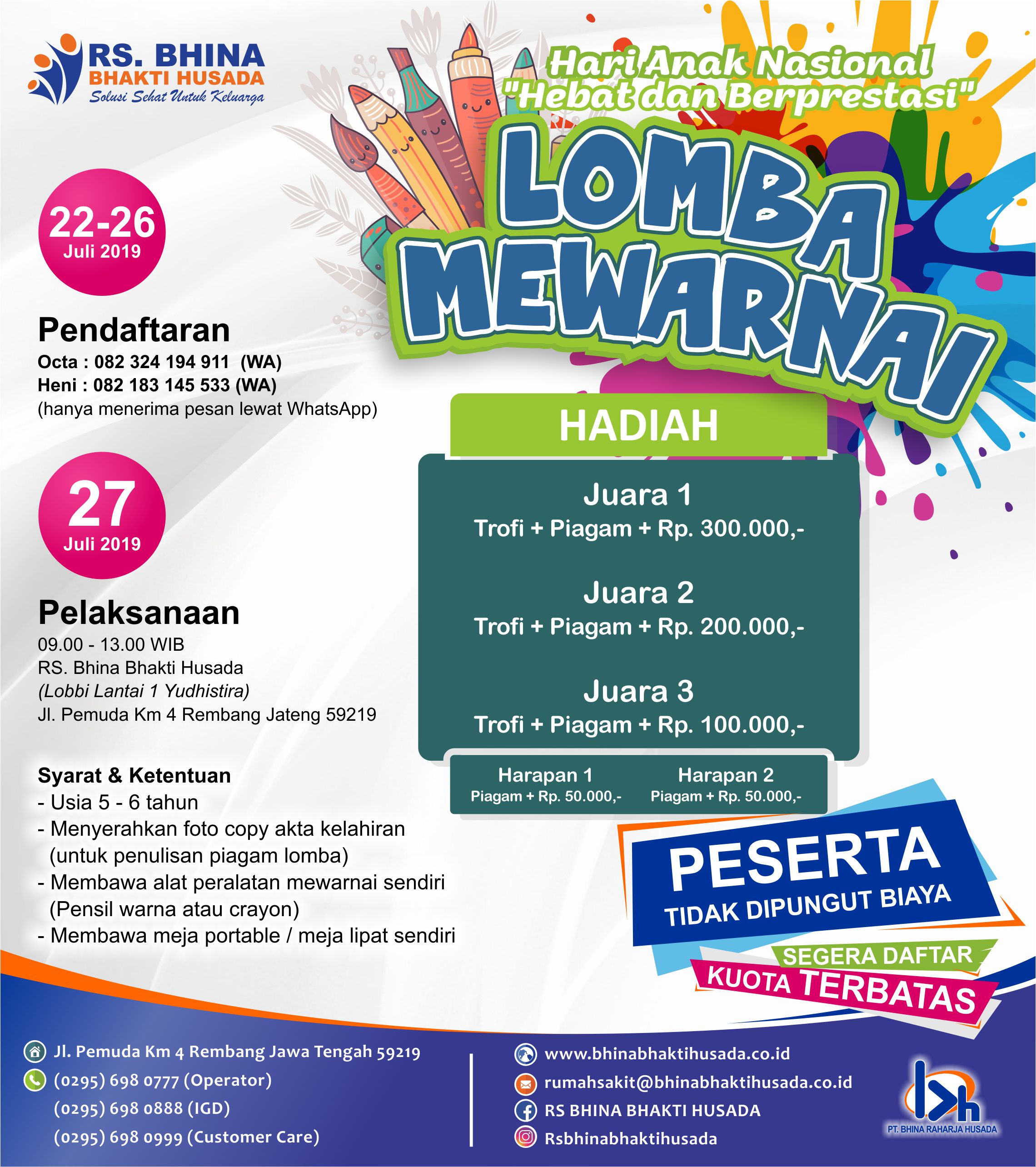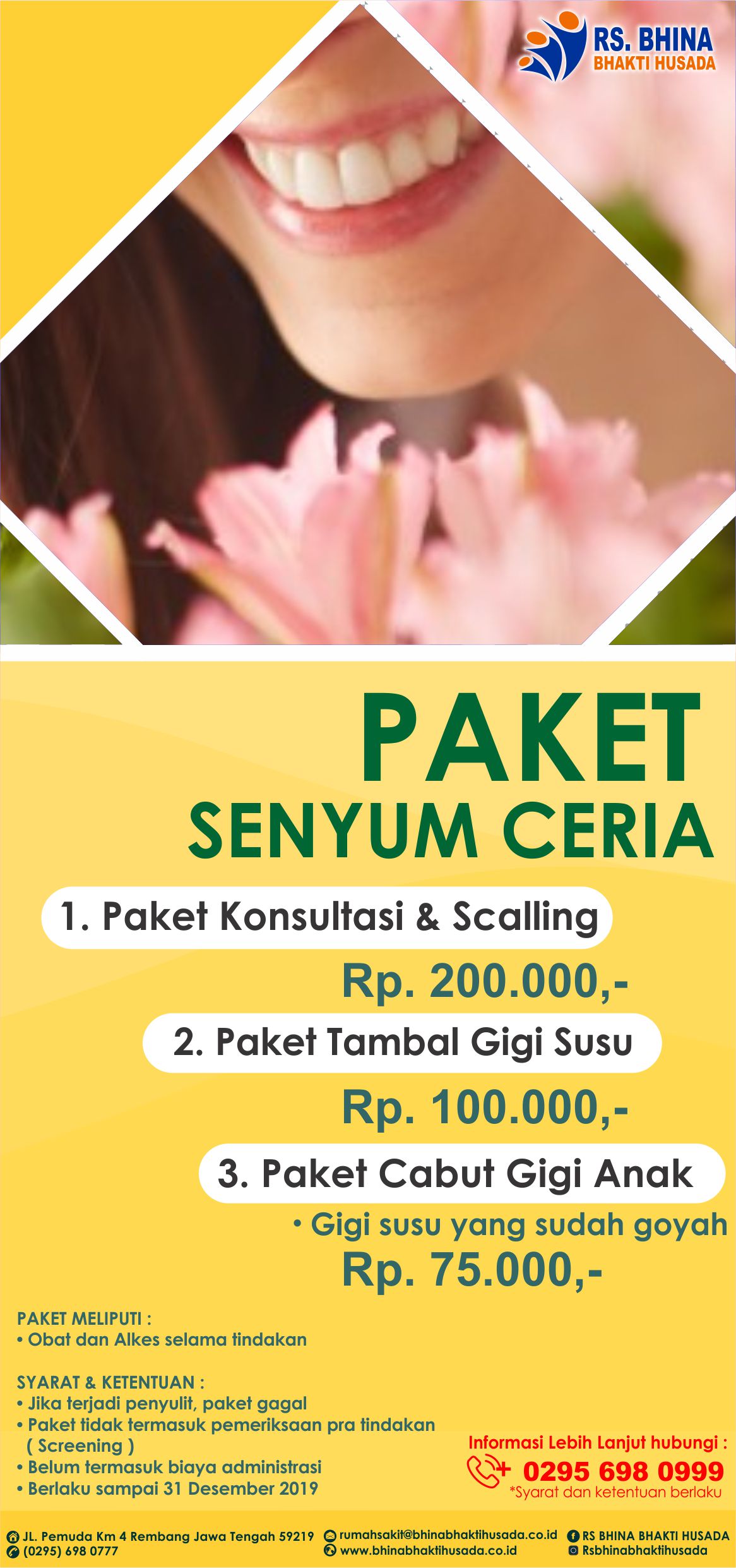 SETAHUN MELANGKAH LEBIH PASTI BERSAMA RUMAH SAKIT BHINA BHAKTI HUSADARumah Sakit Bhina Bhakti Husada (RS BBH) didirikan dengan visi menjadi Rumah Sakit Unggulan Pilihan Masyarakat di Wilayah Rembang dan Sekitarnya. Diresmikan pada tanggal 11 Mei 2018 oleh D...